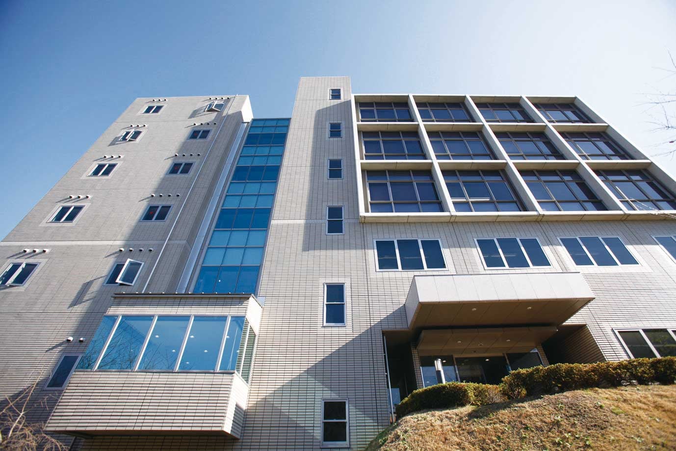 教員の研究室を備えた研究棟では、学生と教員が知的な交流を繰り広げる拠点のひとつとなっています。