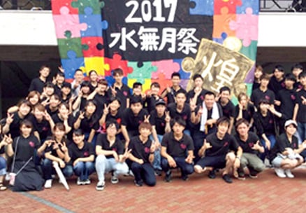 学年・学科を超えて約300名が所属し、入学式から大学祭、卒業式までの学内イベントを企画・運営。 委員長、体育会本部、文化会本部、企画推進委員をはじめ、映像班、スポーツ班、ダンス企画班、屋台班などの組織が、四天王寺大学を楽しく盛り上げるために活動します。中でも11月の「大学祭」の準備は8月からはじまり、一致団結して盛り上げています。仲間とコミュニケーションを図りながらの活動で、社会人になっても役立つ力を身につけることができます。