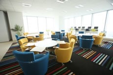 普段はオープンスペースですが、可動式パーテーションを使用することにより、52席の教室として利用できます。