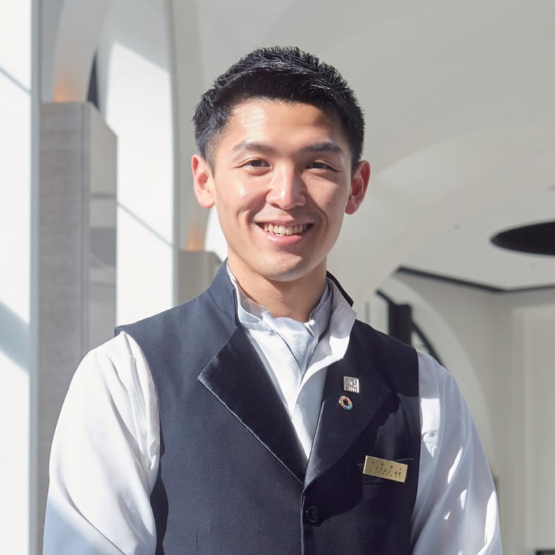 現在は、エクシブ有馬離宮のホテルマンとしてラウンジとバーを担当しています。外国人ゲストも多く、4年間で身につけた語学力やニュージーランド留学で海外の文化や価値観に触れた経験が今の業務に直結しています。在学中、「てんしば」にある外国人ゲストハウスのインターンシップに参加しました。コロナ禍でもできることを考え、天王寺公園に来られる親子向け英会話教室やSNSを駆使したゲストハウスのPRなど、新たな試みにチャレンジしました。こうした実践的な学びの中で、仕事をするうえで必要な社会人としての心構えや気づき、相手の立場に立って考える事の重要性などを体験し、多くのものを得ることができました。さまざまな経験を積み、ホテルマンとしての実力を身につけ、最高のサービスを提供できるホテルをつくりあげたいです。