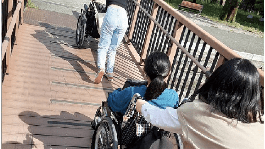 地域社会で〈和の精神〉を実践することをめざし、障がい者支援のヘルパー資格取得をサポートしています。重度訪問介護は障がい者の外出支援や身体介護などを行うもので、障害者総合支援法に基づいています。人間福祉学科では、NPO法人と連携して養成講座を開催し、これまでに学生115名が資格を取得し、社会福祉現場で活用しています。