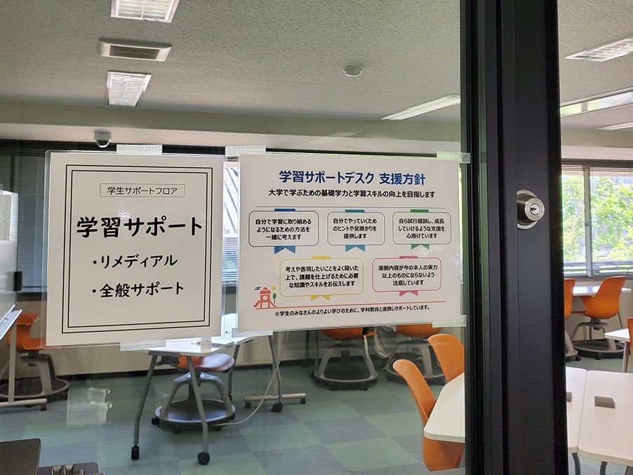 学習のつまづきをフォローするリメディアル教員やサポートスタッフが常駐し、講義や提出課題作成のサポート、または学生生活の相談に応じてくれるスペースです。
