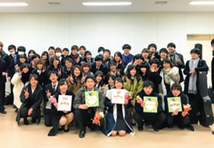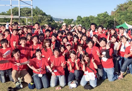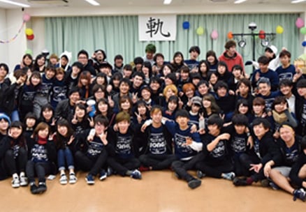 学年・学科を超えて約300名が所属し、入学式から大学祭、卒業式までの学内イベントを企画・運営。 委員長、体育会本部、文化会本部、企画推進委員をはじめ、映像班、スポーツ班、ダンス企画班、屋台班などの組織が、四天王寺大学を楽しく盛り上げるために活動します。中でも11月の「大学祭」の準備は8月からはじまり、一致団結して盛り上げています。仲間とコミュニケーションを図りながらの活動で、社会人になっても役立つ力を身につけることができます。
