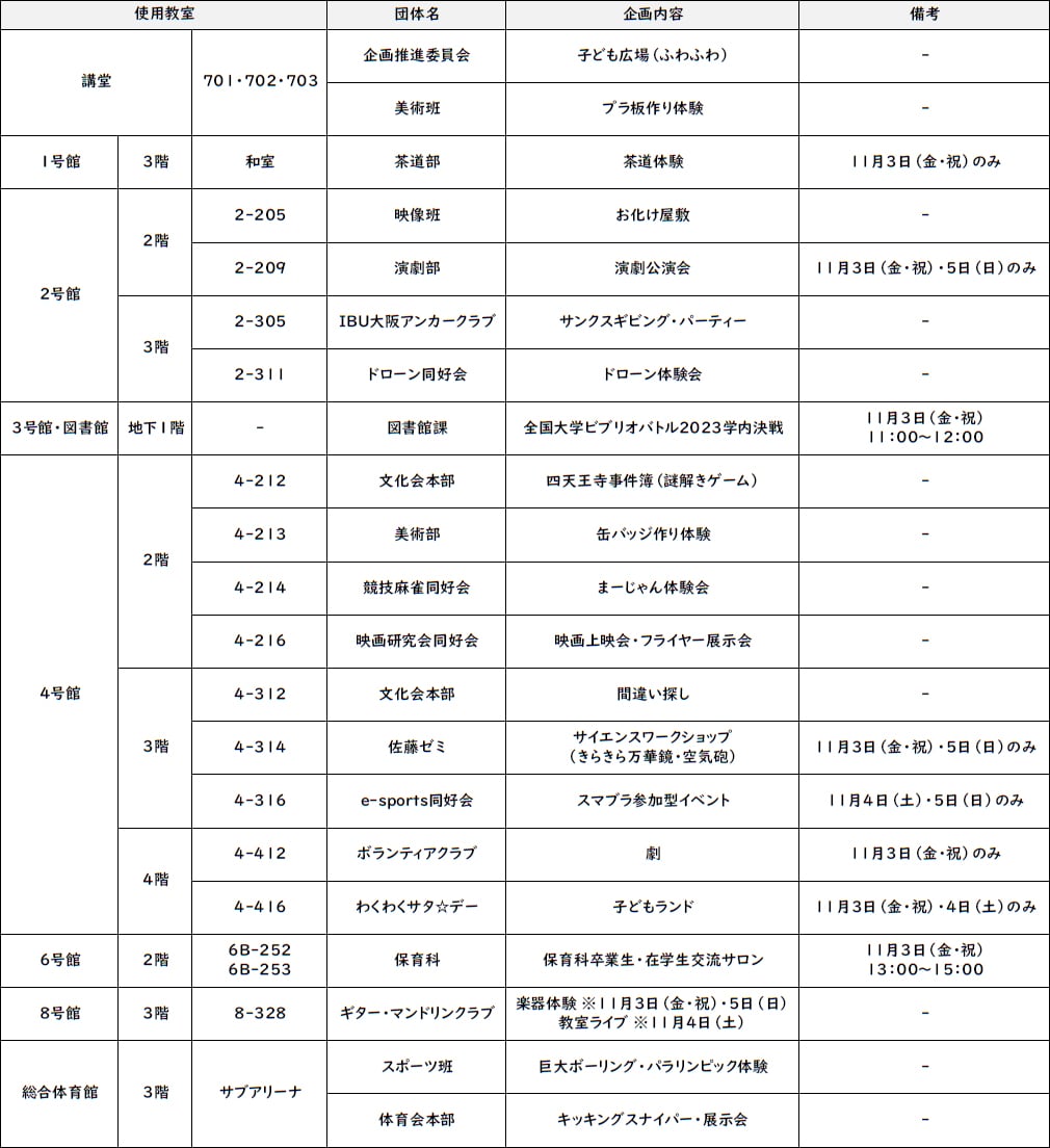 場所:事務局棟側サブステージ(雨天決行・荒天中止)