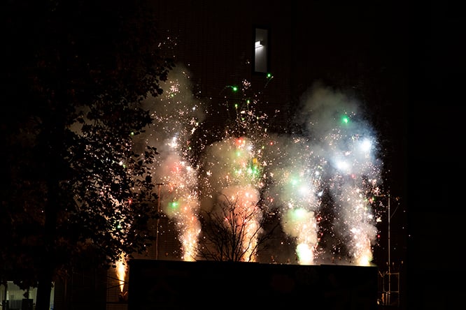 音楽に合わせて噴出花火演出をします!