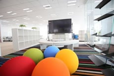 普段はオープンスペースですが、可動式パーテーションを使用することにより、52席の教室として利用できます。