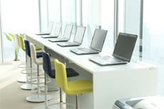 事務エリアの奥に設置しているPCでは、スカイプを使用して大学のスタッフと面談することもできます。