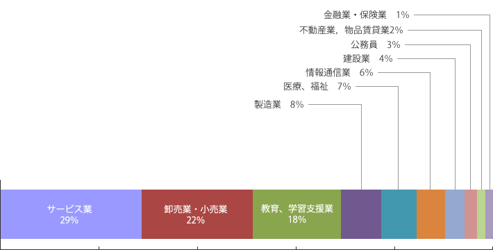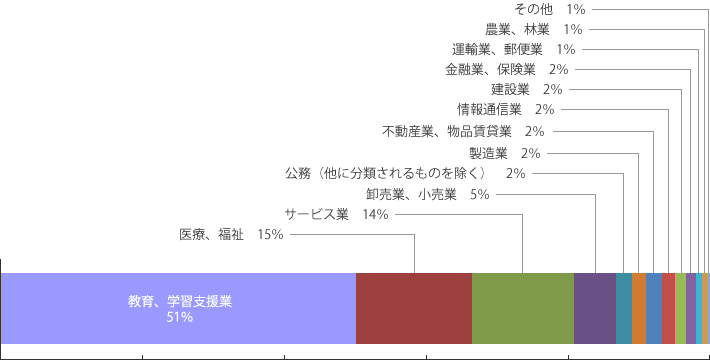 | 保育・福祉・医療関連 | 医療法人徳洲会 / 社会医療法人生長会・社会福祉法人悠人会 / 医療法人春秋会 城山病院 / 市立岸和田市民病院 / 社会福祉法人四天王寺福祉事業団 / 藤井寺市立保育所 / 岸和田市保育所 / 吹田市立保育所 / 大阪市立保育所 / 香芝市立保育所 / 葛城市保育所 / 生駒市保育所 / 田辺市立保育所 / 私立保育園 |