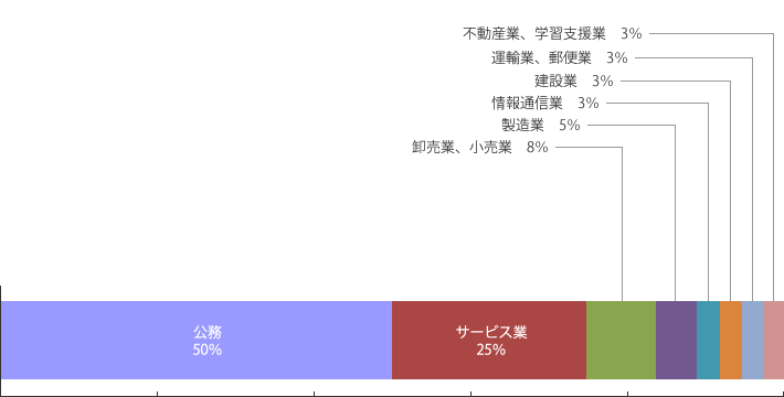 | 公務員 | 法務教官 / 警視庁警察官 / 大阪府警察官 / 奈良県警察官 / 和歌山県警察官 / 奈良県庁 / 大阪市役所 / 豊中市役所 / 和泉市役所 / 羽曳野市役所 / 富田林市役所 / 大阪狭山市役所 / 橿原市役所 / 西脇市役所 / 雲南市役所 / 湖南市役所 / 長久手市役所 / 堺市役所(社会福祉職員) / 大阪市職員(社会福祉職員) / 岸和田市役所 / 大阪府義務教育諸学校事務職員 / 太子町役場 / 日高川町役場 |