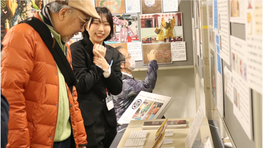 学芸員資格の取得をめざす学生たちに向け、四天王寺宝物館で実施される実習が年間を通じて延べ4日間あり、夏休みには3日間の集中講義も実施されます。4年生の卒業前には、自分たちで企画した学内展示を完成させることが最終課題となります。