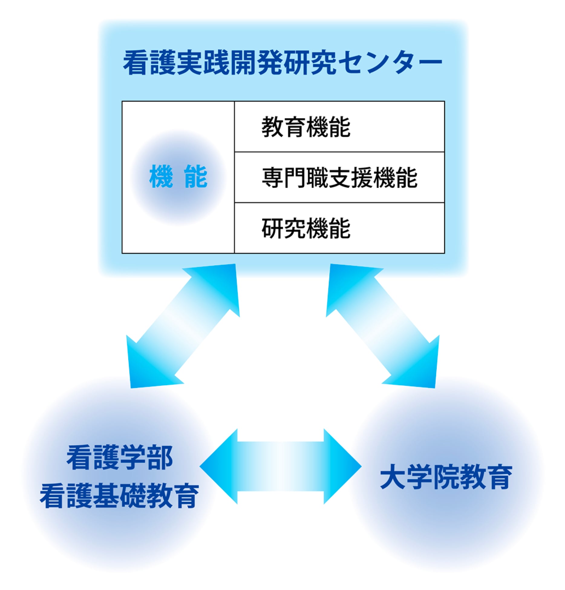 超高齢社会の進展に伴い、認知症や五大疾病等(がん・脳血管疾患・心疾患など)の慢性疾患や生活習慣病が増加しています。2023年度からは、新型コロナウイルスの感染拡大と感染者数の増加によって、教育のあり方や医療体制および国民の生活様式も急激に変化しました。また、日本国内だけでなく世界各地ではさまざまな災害が発生し非常時の対応や防災教育が求められています。人々の健康に関するこのような社会の課題に対応するため、より高度で確実な知識と技術が提供できる看護職が必要とされています。これからの看護職・介護福祉職には、認知症や疾病を有する人々自身、患者やその家族をとりまく支援体制や社会の医療提供体制や制度にも精通することが求められます。そのためにも看護実践のエビデンスの構築やこれからの看護ケア方法論の開発が求められています。本センターは、医療における社会的な課題に対処し、看護の質の向上と医療提供体制の構築を目的とした教育を提供し、研究活動を実施いたします。本センターの実践によって人々の健康維持・向上のみならず、看護職・介護福祉職の人材育成と研究能力の向上を目指して活動致します。