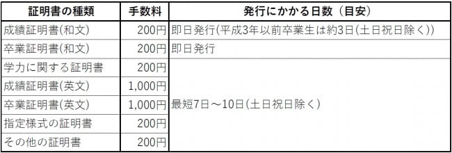 但し、平成21年3月以前に卒業された方の成績証明書及びその他の証明書はサテライトキャンパスでは発行できませんので、本学での発行をお願いします。